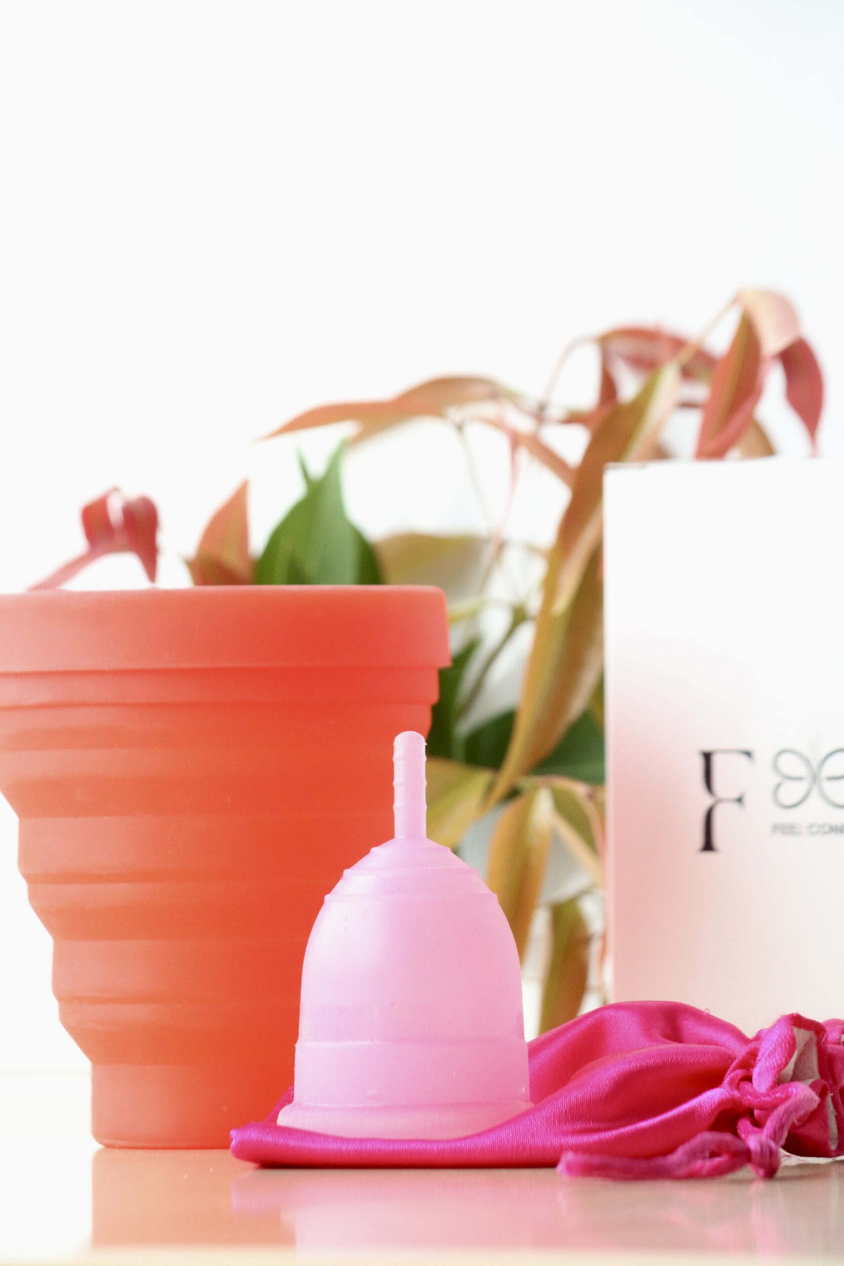 The Feelce Cup Kit – A sustainable, leak-proof, and eco-friendly solution, featuring a medical-grade menstrual cup, sterilizer, sanitary pads, and tissue paper—designed for women who seek comfort with a planet-friendly approach.
