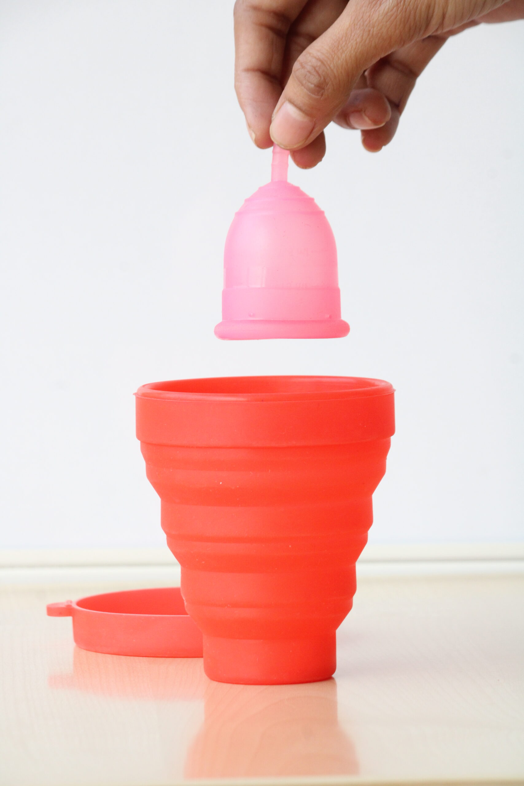 Feelce Cup Kit includes a reusable menstrual cup, sterilizer, Sanitary pads and tissue Papers.